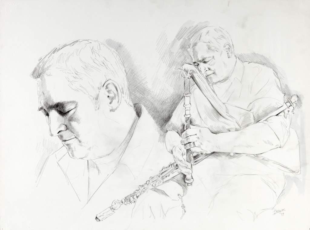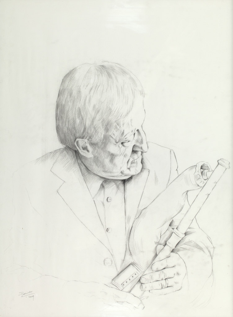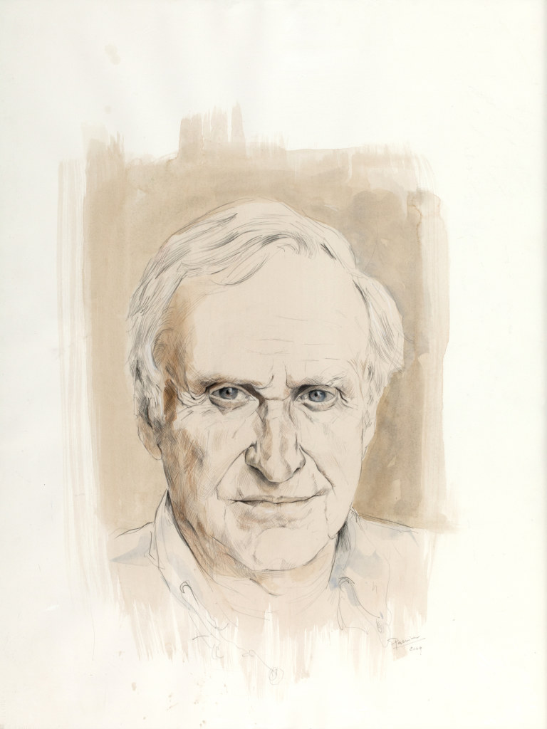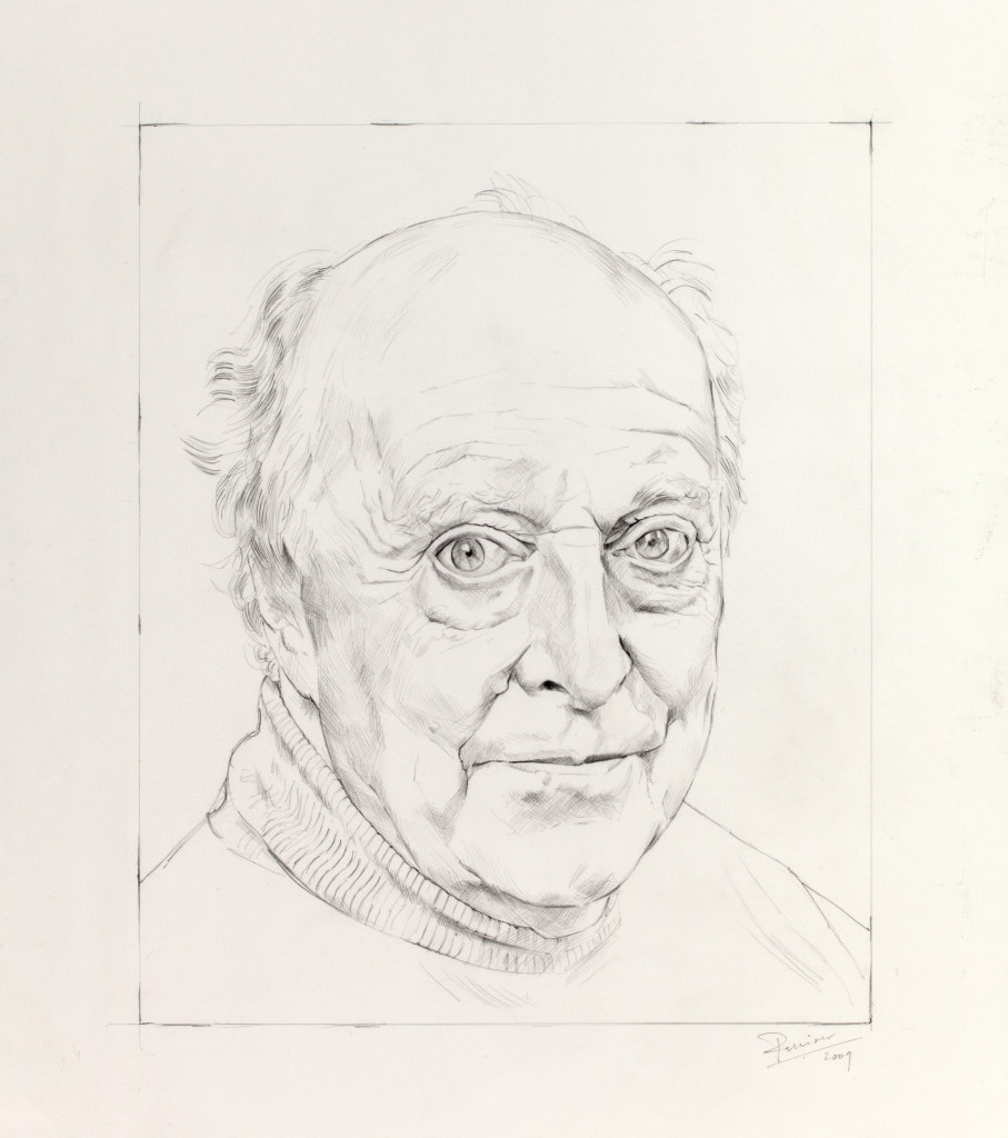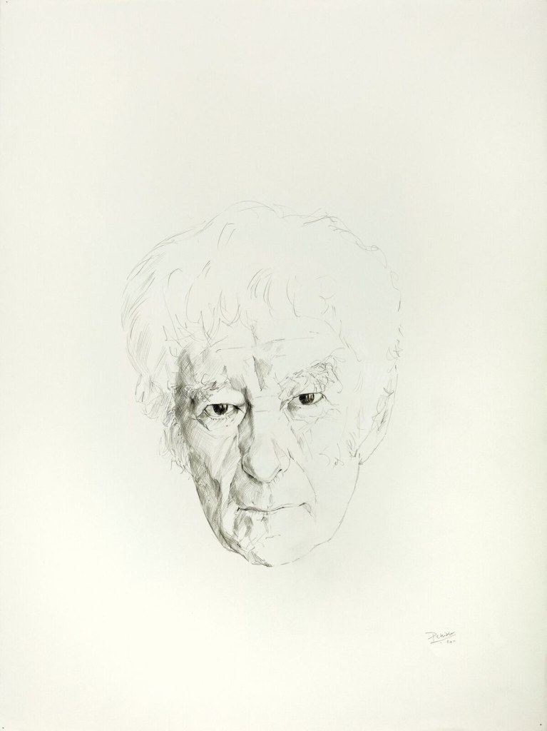 The art historian Andrew Graham-Dixon recently compared the portrait to a time machine. It is in exactly this context that Palliser’s exceptional paintings and drawings work so well, capturing each sitter at a particular moment in time, usually at the peak of their artistic powers and standing, and, in this case, especially in regards to the international recognition that they have received for their contributions to Irish cultural life at home and abroad. Through his brush, pen and pencil, Palliser has distilled, to the fundamental spiritual level, the true character of each of his subjects. The result is a peeling away of the outward, self-protecting layers of each person’s public persona and the laying bare, for all to see, face to face, of each sitter’s inner, private world. From the drawing of a simple line, their essence and dignity has been gently revealed.